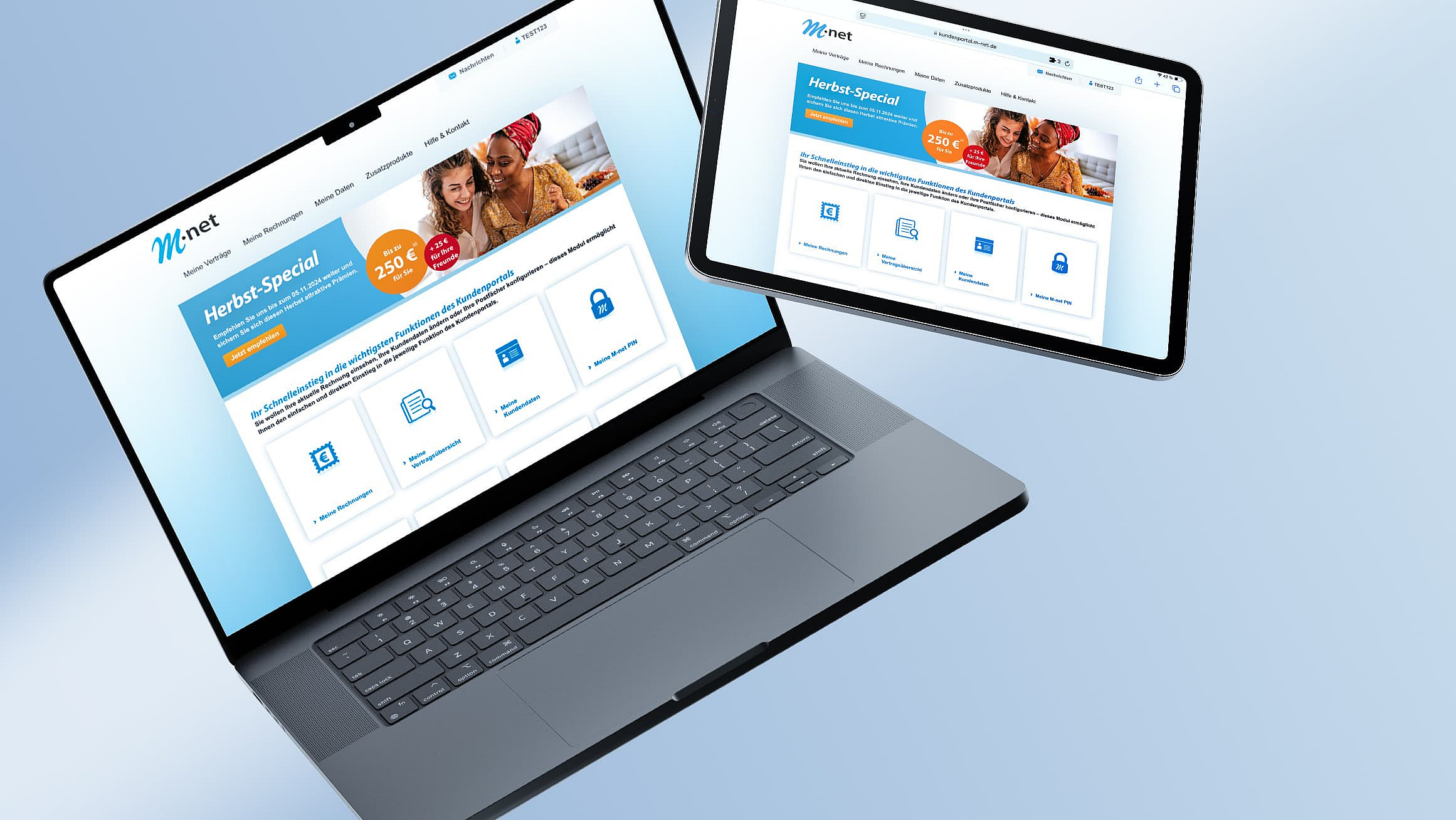 In unserem M-net Kundenportal können Sie unkompliziert Ihre Kundendaten, Zugangsdaten, Rechnungen und Dokumente verwalten. Außerdem können Sie dort als Geschäftskunde nicht nur aktuelle Störungen sehen, sondern auch Störungen melden.